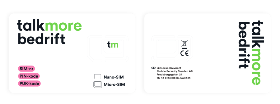 Du kan enkelt dele dataen din på flere enheter, eller få et SIM-kort til reservemobilen med et ekstra SIM-kort. Våre SIM-kort kan både brukes som hoved-SIM, data-SIM eller som tvilling-SIM. Dette velger du når du aktiverer SIM-kortet på Mine Sider eller i Talkmore-appen. Nytt SIM-kort har en engangskostnad på 99,–.